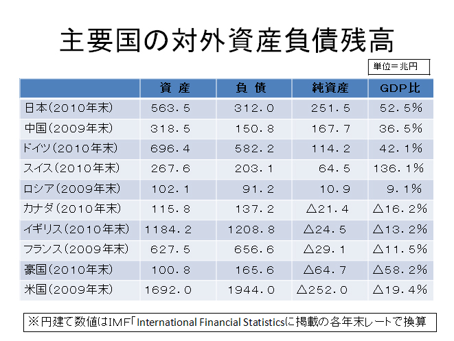 表は2010年と2009年の数字が混在(出所=財務省HP)していますが、仮に全て2010年末の数字になったとしても、日本が2位になることは考えられません。