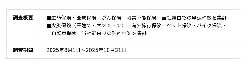 」(※1)において、2025年12月版の生命保険、医療保険、がん保険、就業不能保険、火災保険(戸建て・マンション)、海外旅行保険、ペット保険、バイク保険、自転車保険の人気ランキングを発表しました。
