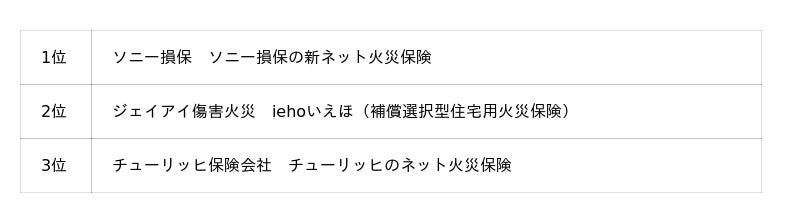 ■チューリッヒ保険会社「チューリッヒのネット火災保険」が3位にランクイン