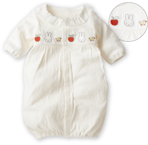 お胸にミッフィーとりんごをデザインしたかわいいドレスオール