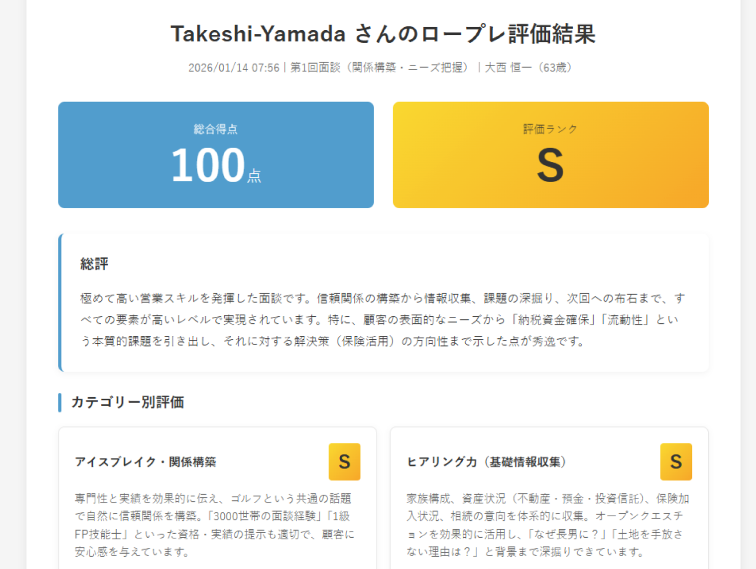 - 生成AIとの対話による実戦的スキルの習得 生成AIで作られた多様な顧客ペルソナと、音声によるインタラクティブな会話を行います。マニュアルの丸暗記ではなく、顧客の反応に応じた柔軟な対話力を養うことで、これからの時代に求められる営業スキルの基礎を効率的に習得できます。- 現場の成功パターンを組織の記憶として定着 Finatextの知見を活かした複数のプリセットシナリオにより、契約即日から利用可能です。さらに、各社の育成課題に合わせて、顧客ペルソナ、推奨商品、評価基準(採点ロジック)を導入企業側で柔軟にカスタマイズできます。これにより、トップ営業のノウハウや組織として定着させたい成功パターンを組織全体に標準化させることが可能です。- 金融機関水準のAIインフラによる堅牢なセキュリティ 本サービスは、大手金融機関のミッションクリティカルな基盤として既に活用されているFinatextのクラウドインフラ上で稼働します。Finatextは、高度なサイバーレジリエンス体制とガバナンスを備えたプラットフォームを提供しており、セキュリティ要件の厳しい金融機関様でも安心してご導入いただけます。