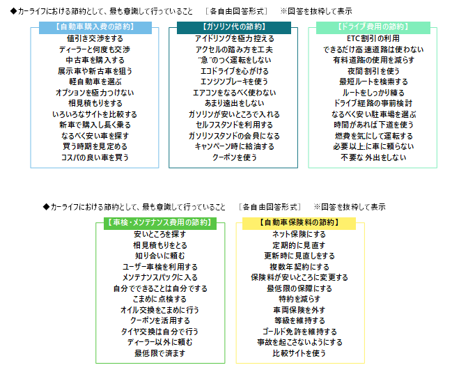 「自動車購入費の節約」「ドライブ費用の節約」「車検・メンテナンス費用の節約」では