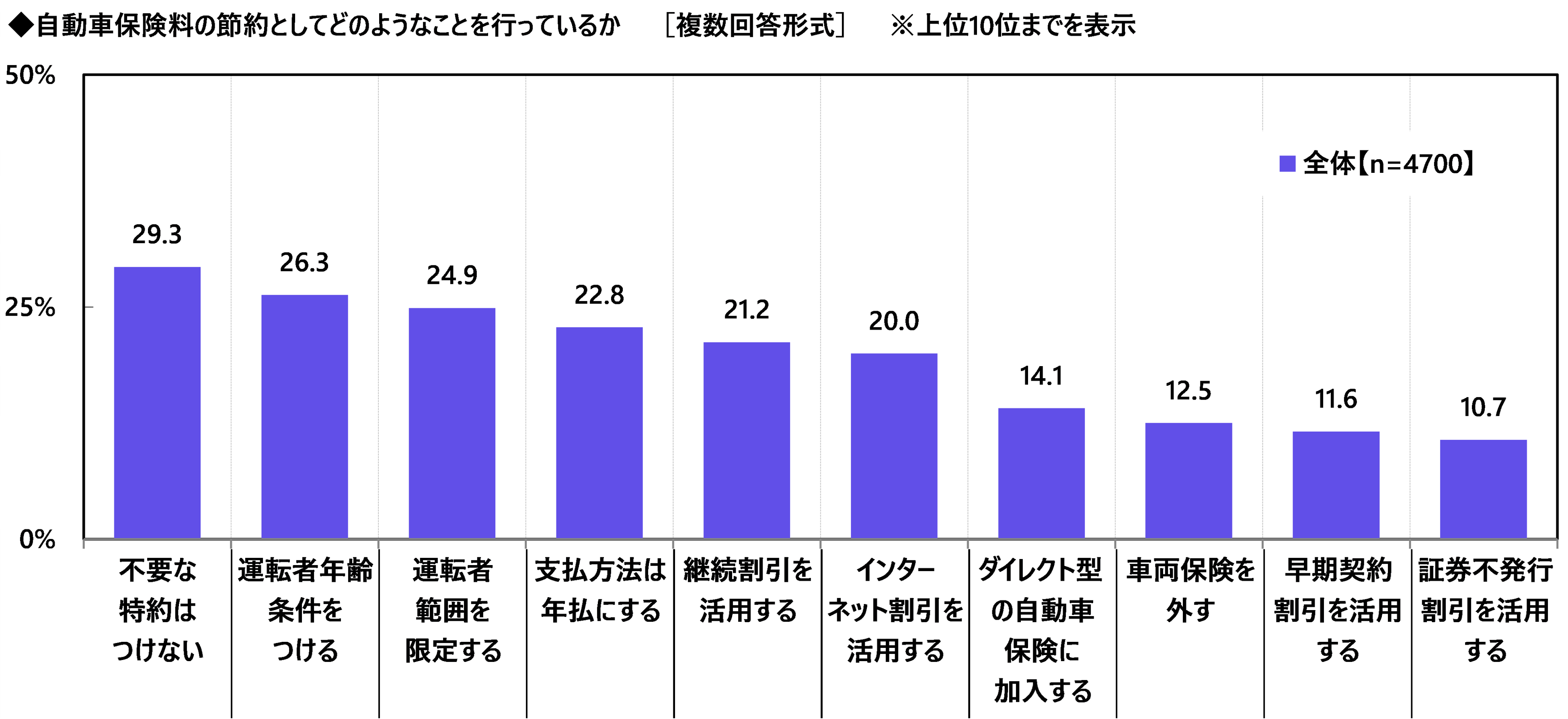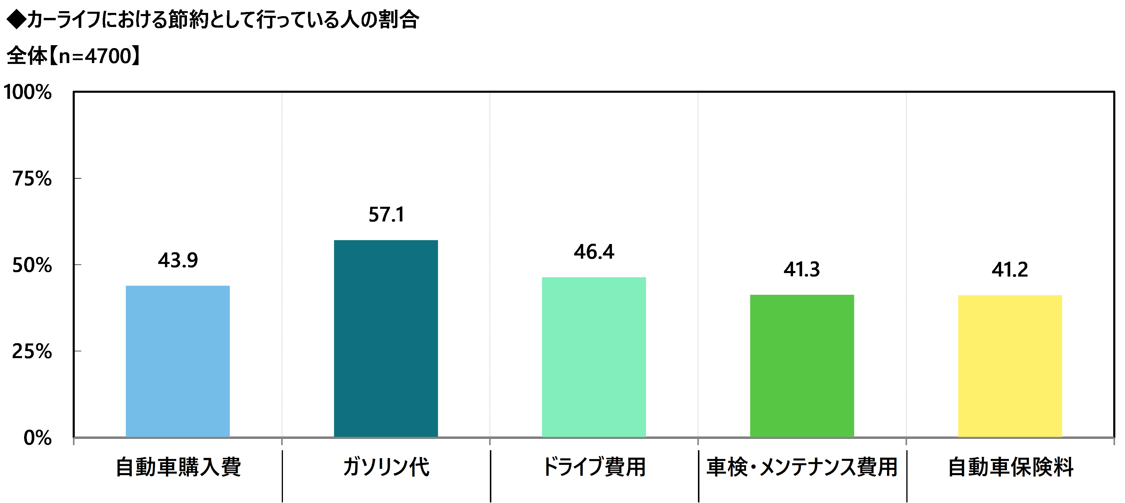 自家用車保有者で月に1回以上運転する全国の20歳~69歳の男女4,700名(全回答者)に、カーライフに関するコストの実感や節約に対する意識・実態について質問しました。