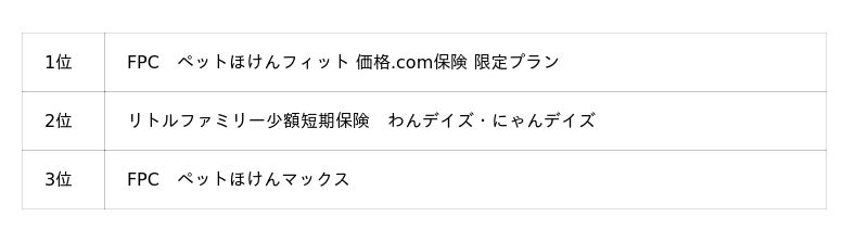 ■FPC「ペットほけんマックス」が3位にランクイン