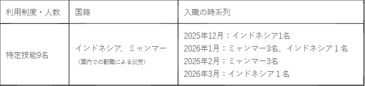 この取り組みは、人材不足への対策に留まらず、ご入居者さまへの質の高いサービスの提供、外国人材のキャリアアップという「三方良し」につながっています。来年度はさらに20名の採用を計画しており、今後もこの取り組みを積極的に推進してまいります。