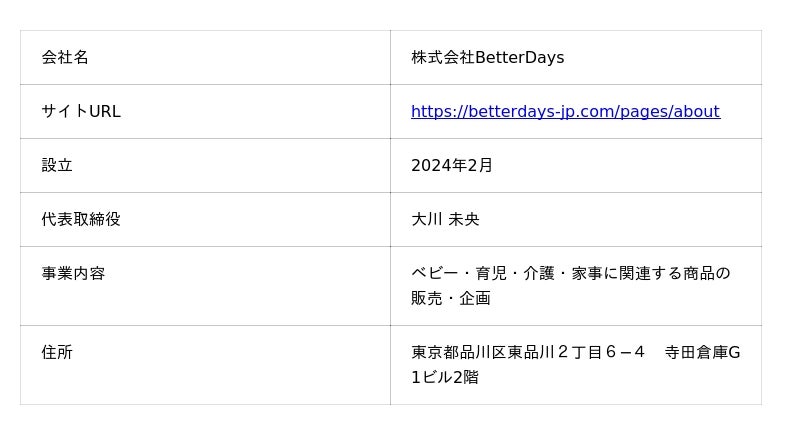 株式会社BetterDaysは、「家事をもっとシンプルに。」という理念のもと、現代を生きる人々が日々にゆとりを持てるよう、ベビー・育児・介護・家事に関連する商品の企画・販売を行っています。
